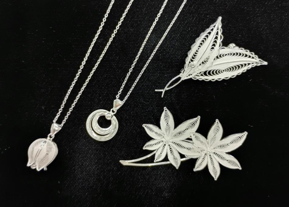 伝統の技 秋田銀線細工 1830年(天保元年)創業の製造販売元。細い純銀の糸を寄り合わせて作る手作りの逸品