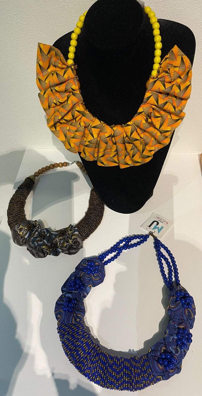 Bespoke handcrafted neck, wrist, and ear accessories made with beads and rich traditional textiles.