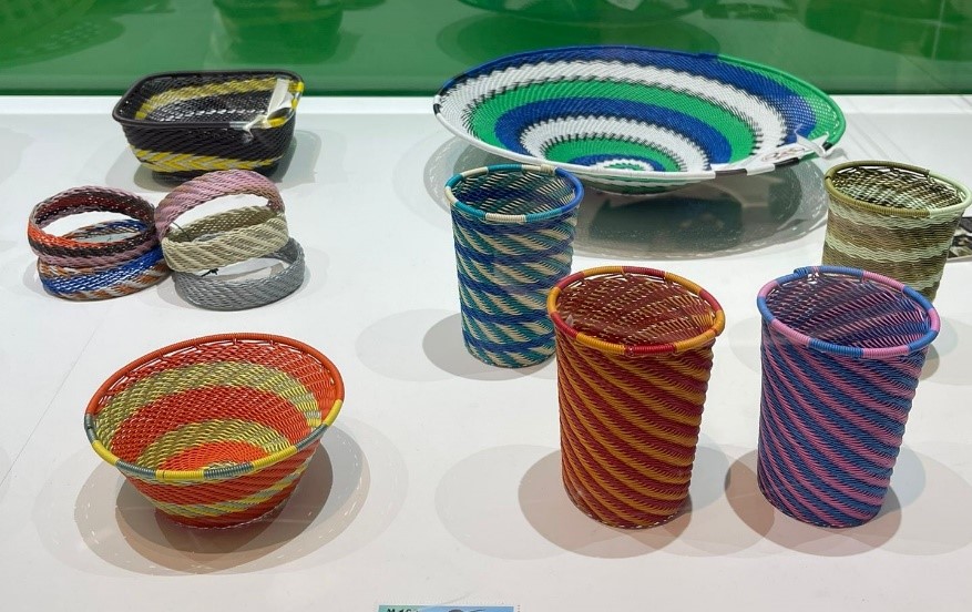 Accessories and art are crafted from recycled telephone cables. These products are ideal for kitchen or office use to organize utensils, store stationery and small items as well as for home décor.