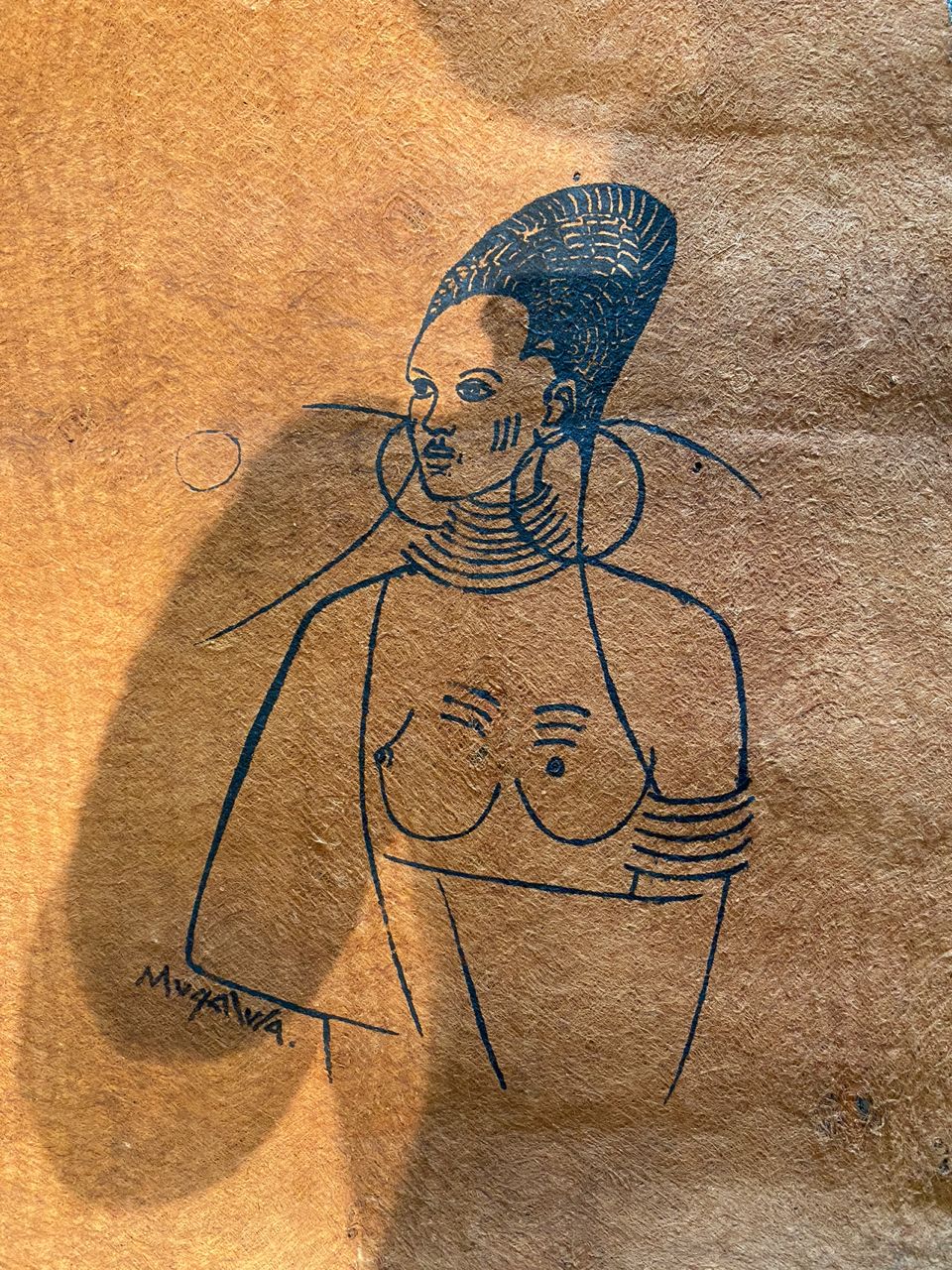 ウガンダの芸術家ムガルラ・ムキイビは、ガンダ族のもつ独特な素材の歴史と伝統的な背景について研究を行い、学術的な裏付けのもと、この素材を使った革新的で彼独自の美的モチーフを無限に取り入れた芸術作品を作り、世界中の芸術愛好家の間で人気を博しました。