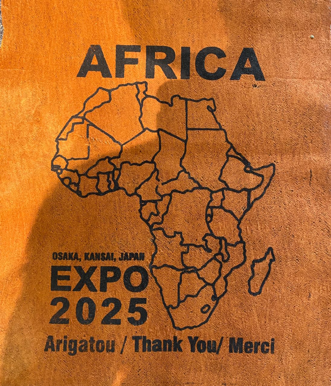 アフリカの地図を描いた樹皮布 - 万博の記念品