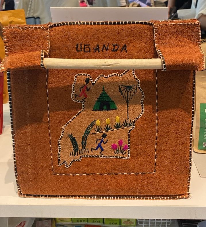 ウガンダ発祥の伝統工芸で各家庭で常備されている樹皮布はFicus natalensis(ナタレンシス)の樹皮で作られており、ナタレンシス1本あたり最大50枚採取されます。幅18インチ(46cm)の樹皮を波形の木槌で何度も叩くことで、幅7フィート(213cm)を超える布に仕上がります。