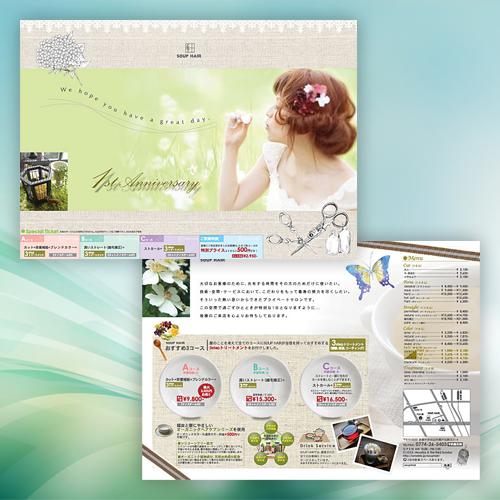 チラシの特徴は表裏2面で構成されるため、いかに表面で興味を惹かせるかがポイントとなります。紙の種類にもよりますが比較的安価で印刷でき気軽に扱える広告です。