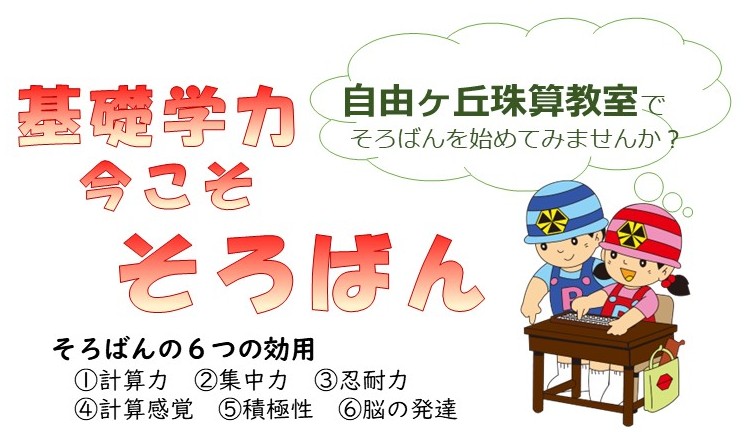 近年、子供達の計算力・学力の低下が懸念されていますが、 適切な時期にそろばんを学習し、暗算力・計算力を 身に付ける事によって解消されます。 また、珠算学習には、集中力・忍耐力を磨くという効果もあり、 お子様の習い事に最適です。